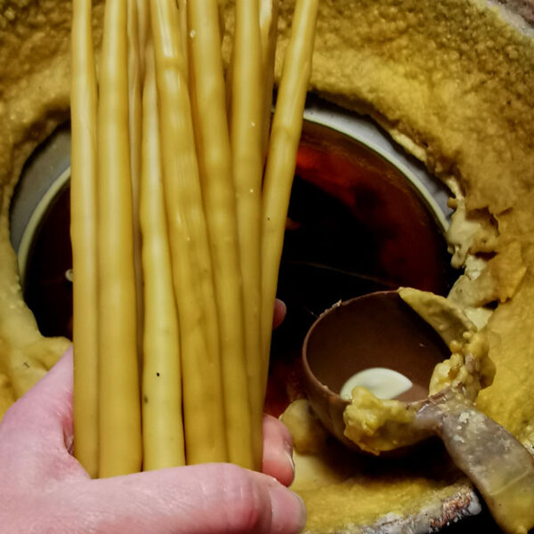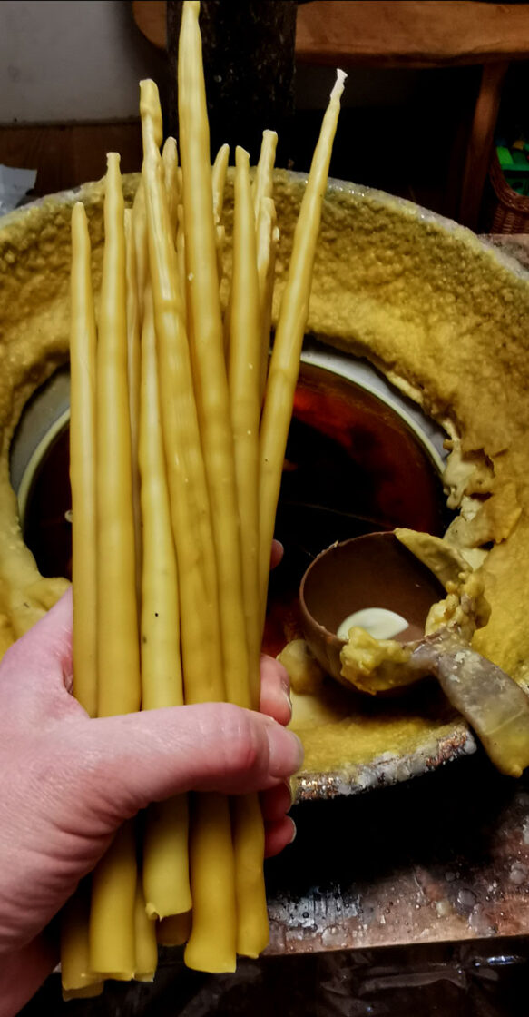 Dvi, liejimo būdu gamintos, žvakės susukamos