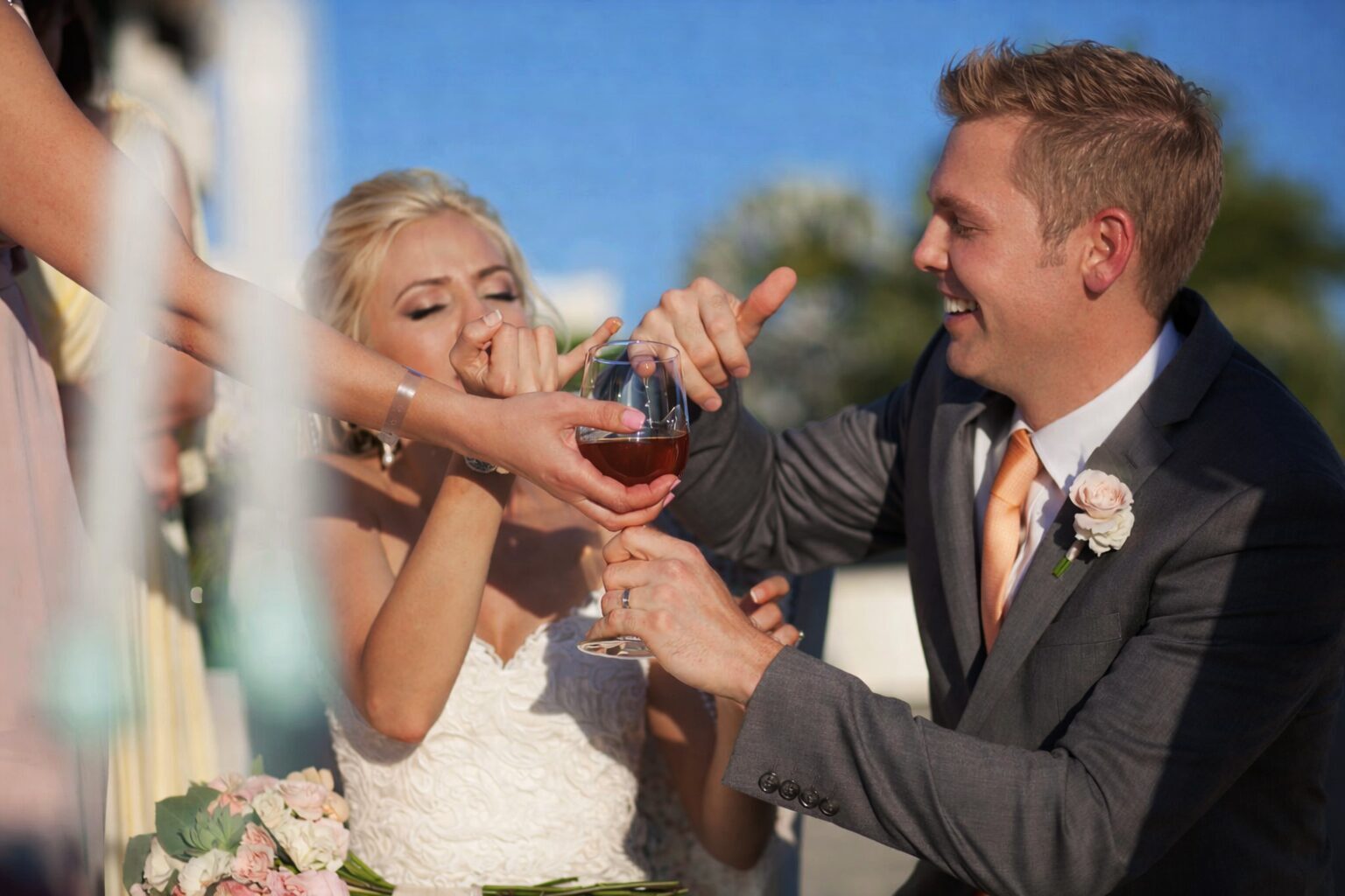 liepsnoje prideginami jaunavedžių plaukų sruogų galiukai. Šiuos ir kitus